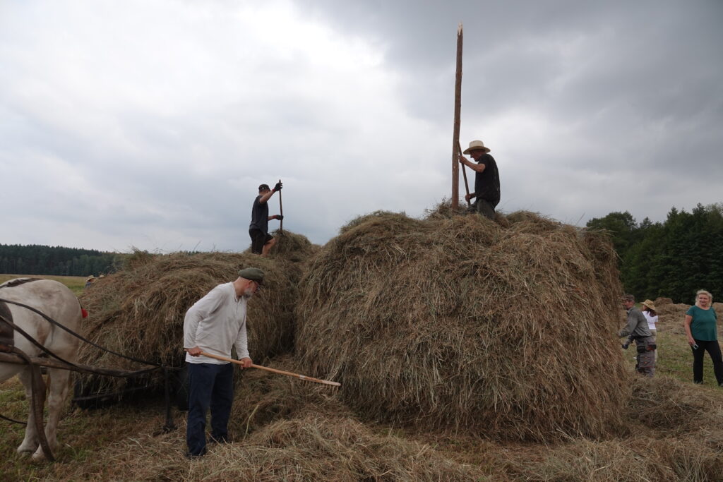 W tym roku, po raz pierwszy, w Puszczy Kampinoskiej odbyły się Puszczańskie Sianokosy w Granicy – święto pracy, tradycji i miłości do natury. Pogoda była łaskawa dla blisko siedemdziesięciu uczestników, którzy – uzbrojeni w kosy, grabie i widły – w pocie czoła rwali się do pracy jak dawni gospodarze. Szum traw mieszał się z dźwiękiem kos, zapachem siana i śmiechem ludzi, którzy wspólnym wysiłkiem ułożyli nie jeden, lecz dwa dorodne stogi – symbole wspólnoty i powrotu do dawnych rytmów przyrody.