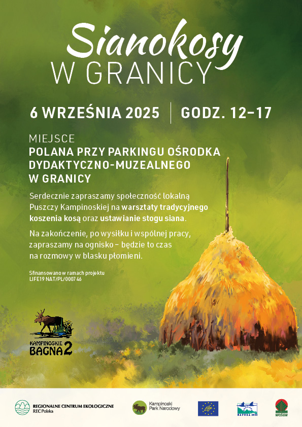 REC Polska wraz z Kampinoskim Parkiem Narodowym serdecznie zapraszają mieszkańców Puszczy Kampinoskiej na warsztaty tradycyjnego koszenia kosą oraz ustawianie stogu siana.